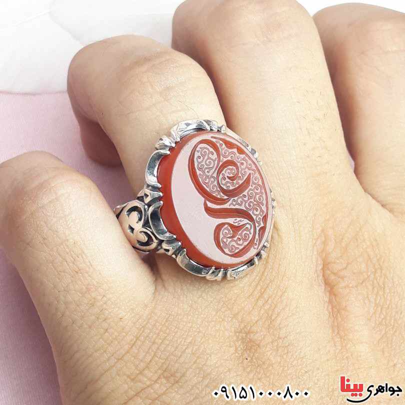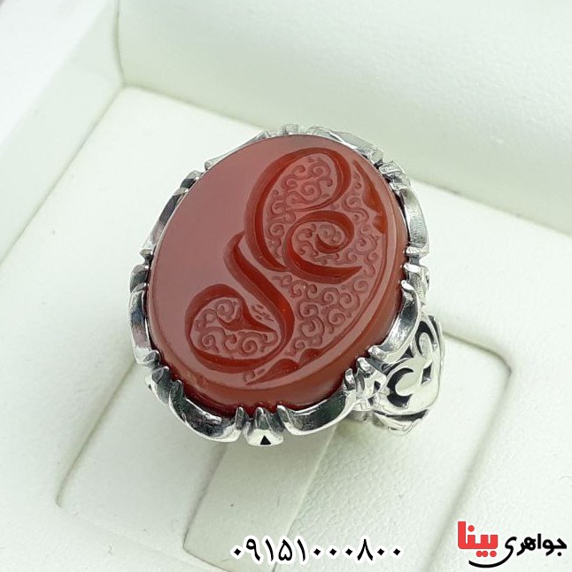 انگشتر عقیق قرمز خطی زیبا با حکاکی علی _کد:۳۳۴۹۲