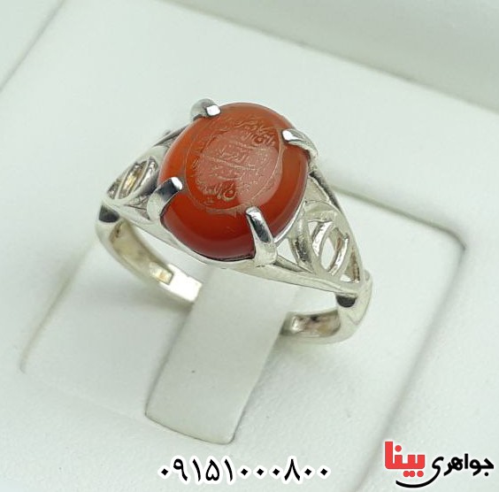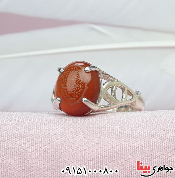 انگشتر عقیق قرمز خطی زیبا با حکاکی وان یکاد _کد:33505