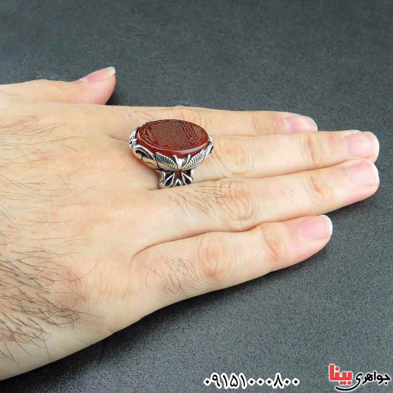 انگشتر عقیق قرمز خوشرنگ درشت با حکاکی سوره الرحمن _کد:31575
