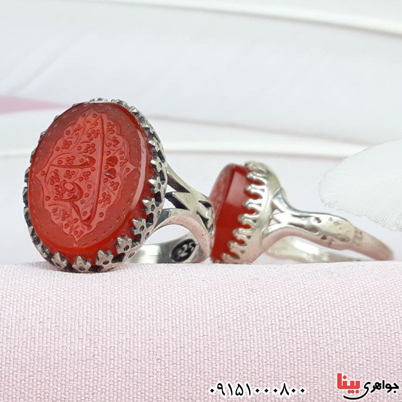 انگشتر عقیق قرمز ست خطی با حکاکی یا علی و یا زهرا _کد:32257