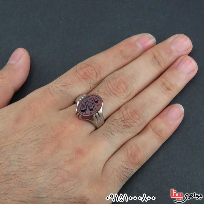 انگشتر عقیق قرمز مردانه حکاکی گود یا عباس _کد:15071