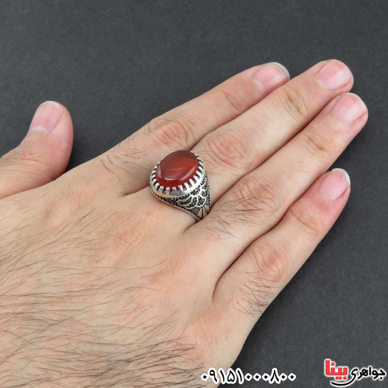 انگشتر عقیق قرمز موکل دار اسلیمی عالی مردانه _کد:32770