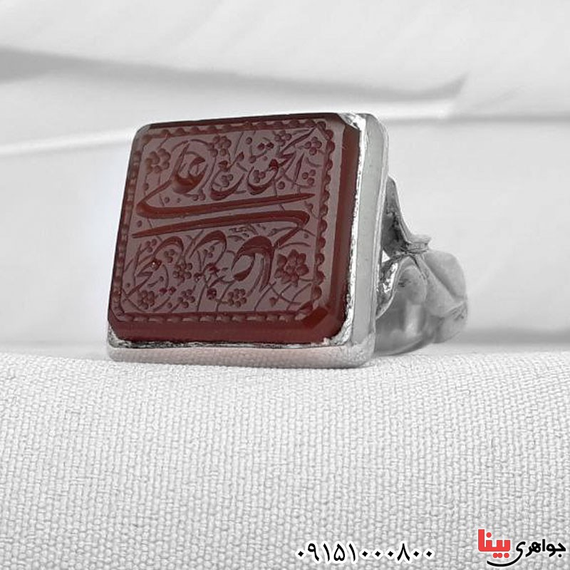 انگشتر عقیق یمنی با حکاکی علی مع الحق و ... دست ساز با حرز و تربت _کد:31038