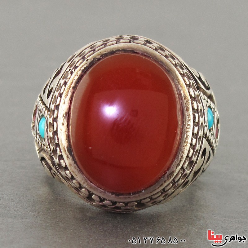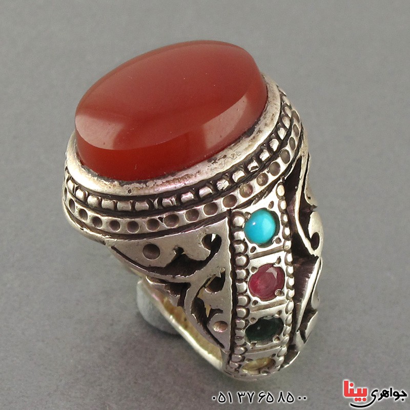 انگشتر عقیق یمنی با رکاب چندجواهر و قدیمی عتیقه _کد:2937