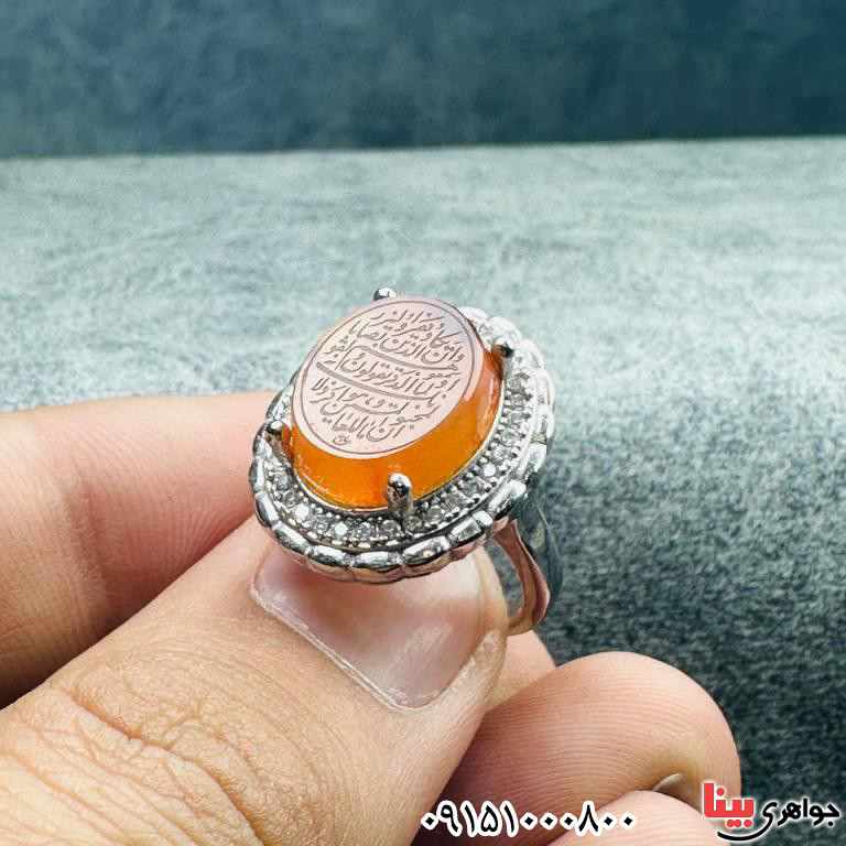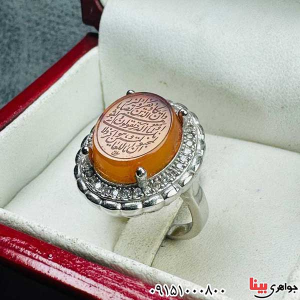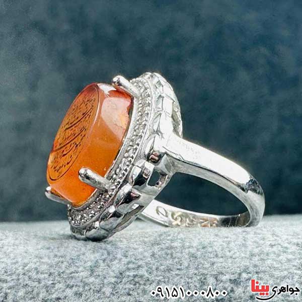انگشتر عقیق یمنی خطی رودیوم با حکاکی و ان یکاد _کد:33051