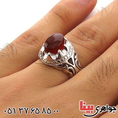 انگشتر عقیق یمنی خوشرنگ مردانه مدل اره کاری قرینه _کد:13076