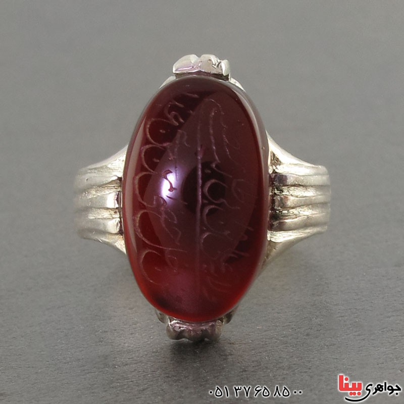 انگشتر عقیق یمنی خوشرنگ موکل دار مردانه با حکاکی دعای ولایت _کد:۱۸۵۹۸