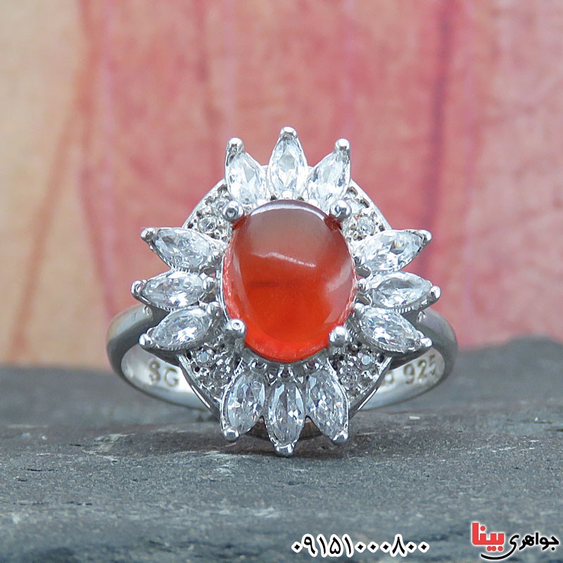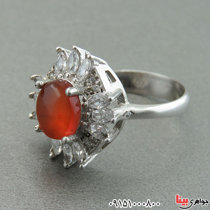 انگشتر عقیق یمنی زنانه خوشرنگ خاص رودیوم _کد:29741