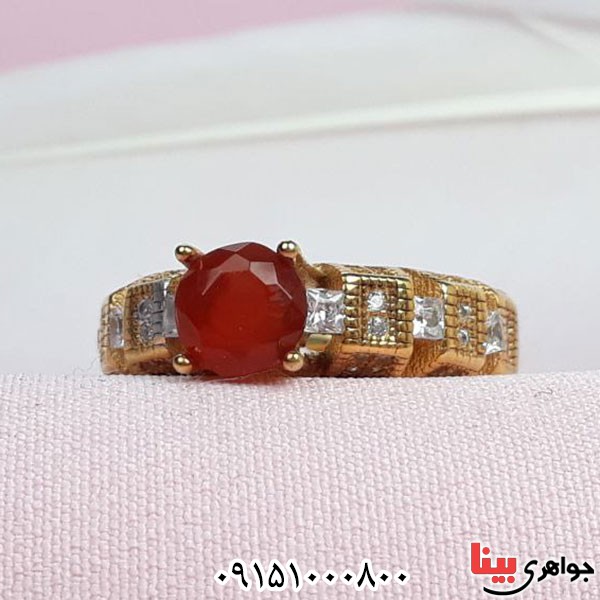 انگشتر عقیق یمنی سرخ بسیار خاص و جذاب آبکاری طلا _کد:33772