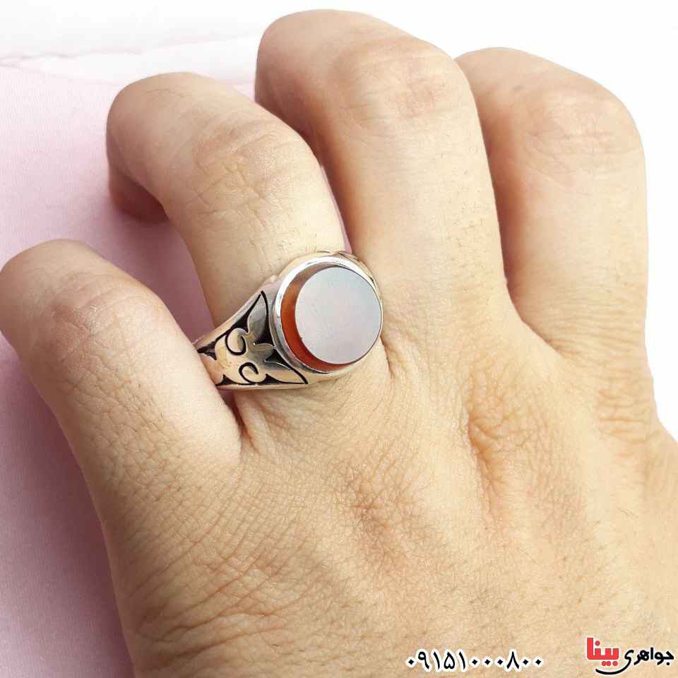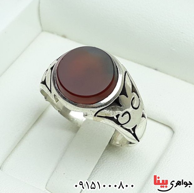 نقره 925 عیار - نگین انگشتر عقیق یمنی سرخ خاص و شیک - انگشتر دست ساز، خوش ساخت و بادوام - (خواص عقیق : افزایش رزق و روزی، دفع بلا، افزایش طول عمر و ... ) - نگین این انگشتر عقیق یمنی، معدنی اصلی میباشد - نگین انگشتر با تراش بیضی - وزن: حدود 9 گرم - طرح روی رکاب شبکه کاری می باشد - سری: 14030513/71*.. S:1