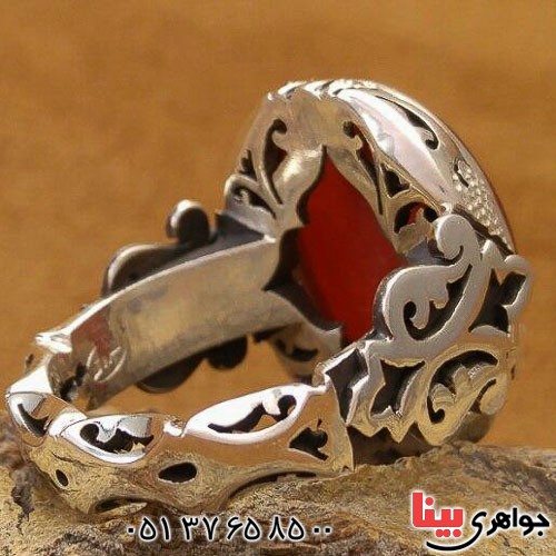 انگشتر عقیق یمنی سرخ دور الماس _کد:21860
