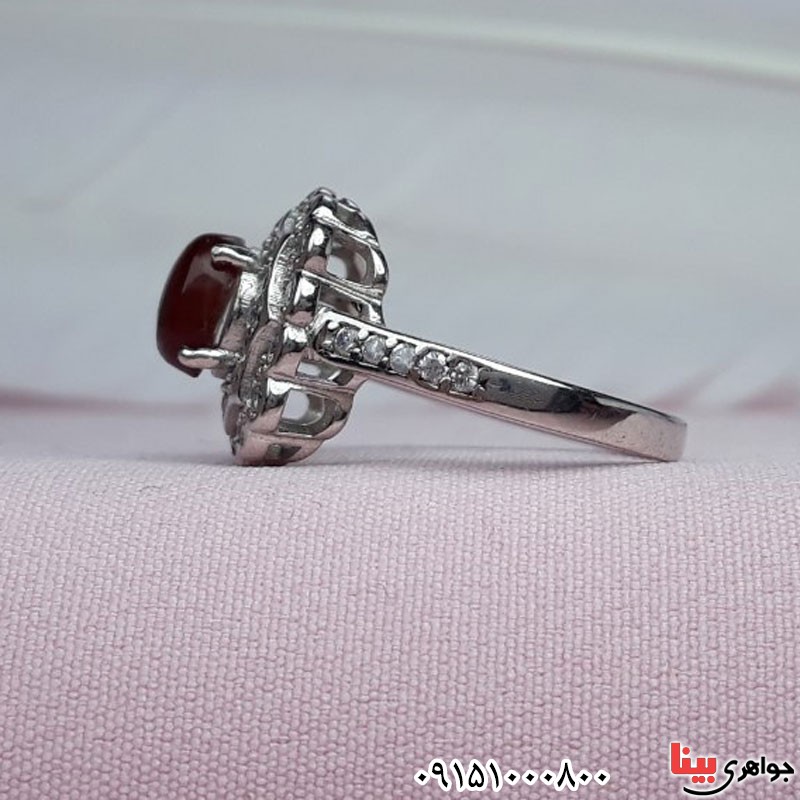 انگشتر عقیق یمنی سرخ رودیوم خوشرنگ زنانه _کد:30828