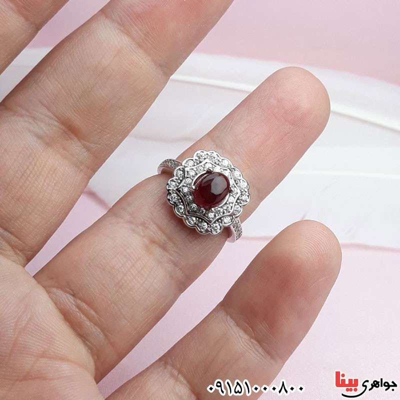 انگشتر عقیق یمنی سرخ رودیوم خوشرنگ زنانه _کد:۳۰۸۲۸