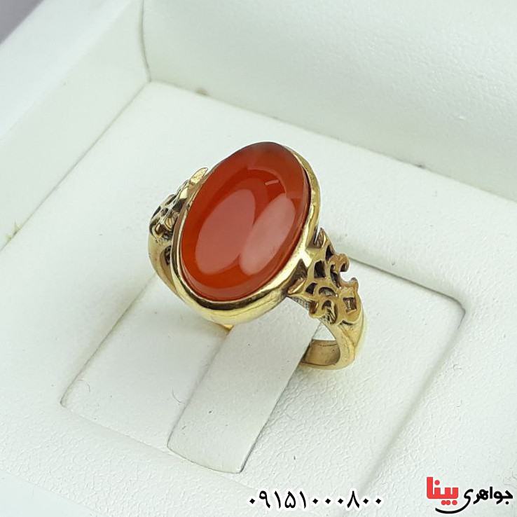 انگشتر عقیق یمنی قرمز با آبکاری طلا بسیار زیبا _کد:33111