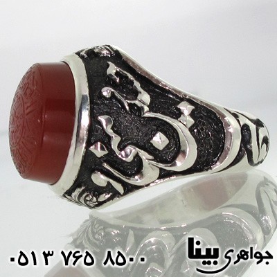 نقره 925 عیار - نگین درشت و تک - قلم زنی سوره توحید بر روی نگین با خط استاد ضرغامی - قلم زنی خط برجسته (حسین منی و انا من حسین) کار دست استاد حسین یساول که چندین ماه روی آن وقت گذاشته شده - کاری سنگین وزن و موزه ای (لطفا توضیحات بیشتر را ملاحظه نمائید.)