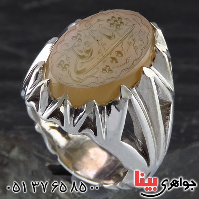 انگشتر عقیق یمنی مردانه درشت و سنگین حکاکی گود یا علی _کد:13921