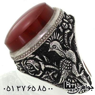 نقره 925 عیار - تک - سنگ عقیق یمنی درشت خوشرنگ - تراش نگین به صورت دامله - رکاب انگشتر دست ساز - ساخت دست استاد جنگی - رکاب انگشتر قلم زنی فوق حرفه ای و برجسته می باشد - نقش هدهد و گل به روی رکاب انگشتر به صورت برجسته با ظرافت فراوانی قلم زنی شده است - ساخت این انگشتر با این ظرافت قلم زنی بسیار زمانبر بوده است - انگشتری هنری و منحصر به فرد - سری: 930605
