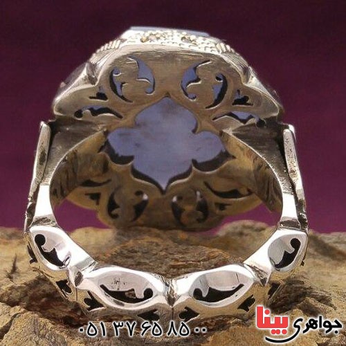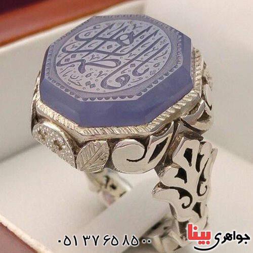انگشتر عقیق یمنی کبود دور الماس با حکاکی خاص _کد:۲۱۴۲۲