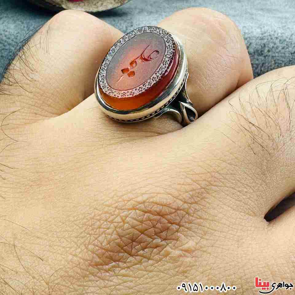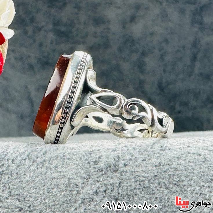 انگشتر عقیق خراسانی زیبا خطی با حکاکی یا علی _کد:33209