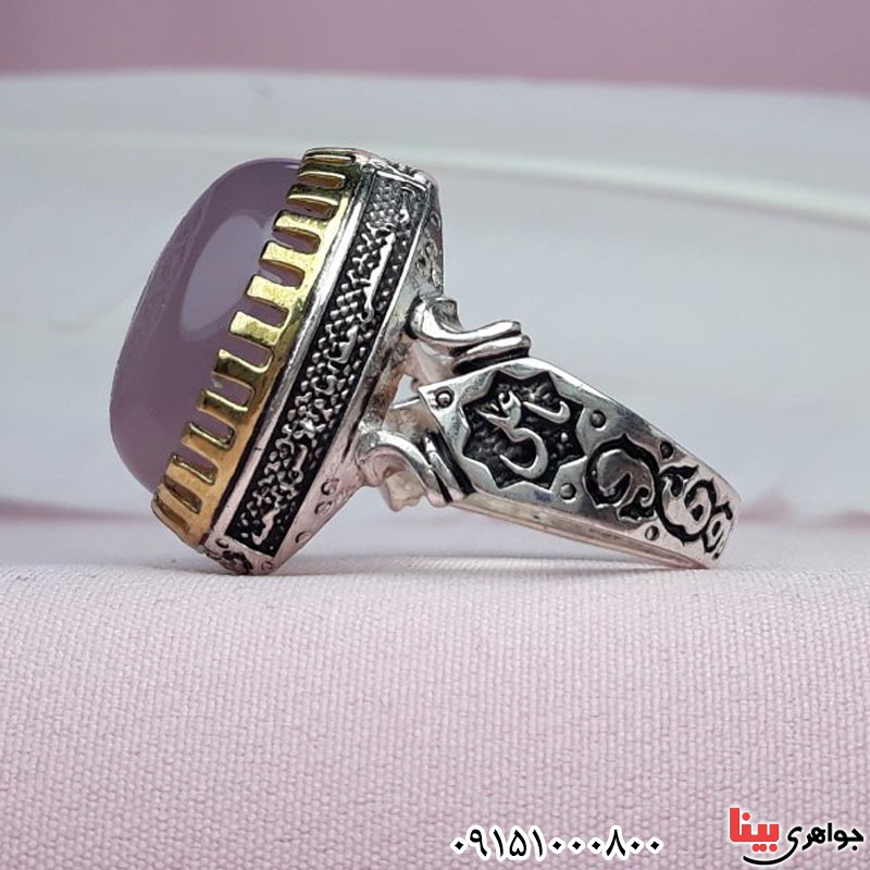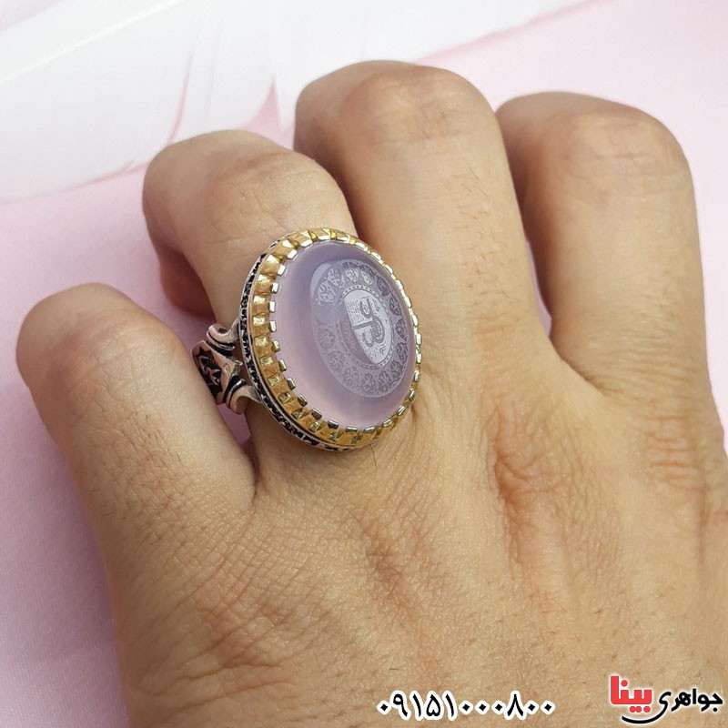 انگشتر عقیق سوسنی خطی با حکاکی عین علی و ۱۴ معصوم _کد:۳۰۸۲۳