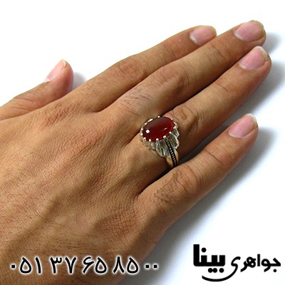 انگشتر عقیق قرمز مردانه مدل سیستانی طرح زیبایی داره