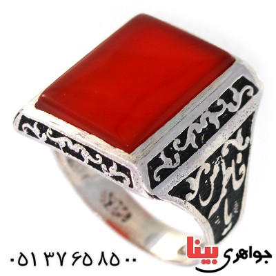 انگشتر عقیق قرمز مردانه مربعی درشت یا فاطمه (س) _کد:10507