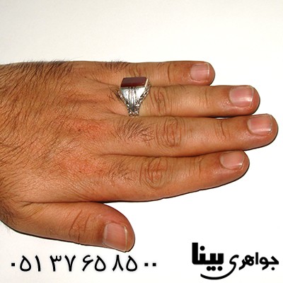 نقره 925 عیار - نگین انگشتر عقیق قرمز - تراش نگین عقیق مربعی و صاف - رکاب انگشتر با طرح های زیبایی ساخته شده - انگشتری زیبا و کلاسیک مناسب آقایان خوش سلیقه - طرح دست ساز - ساخت جواهری بینا - وزن: حدود 9-8 گرم - طرح سنتی - - سری: 940208. t