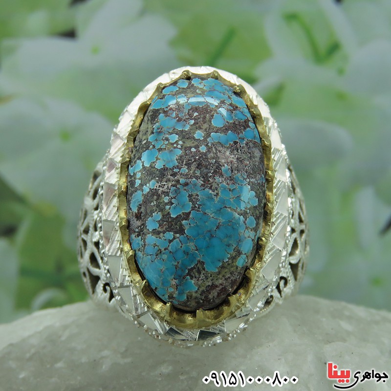 انگشتر فیروزه درشت دست ساز نیشابوری فاخر مردانه _کد:26996