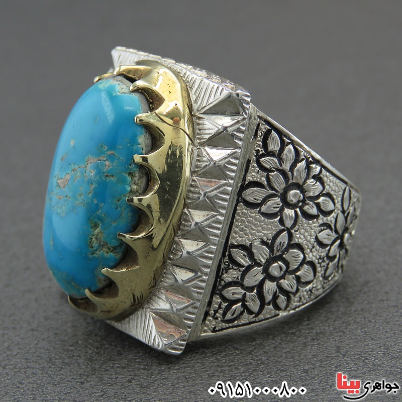 انگشتر فیروزه نیشابوری درشت خاص فاخر دست ساز _کد:28325