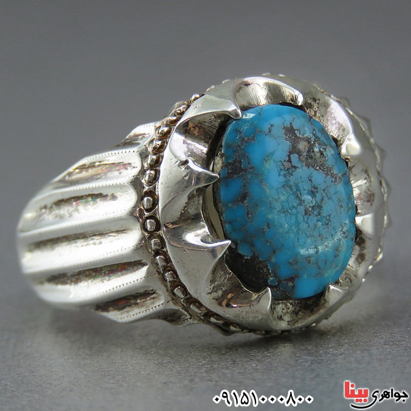 انگشتر فیروزه نیشابوری دست ساز مردانه بسیار خاص _کد:25459