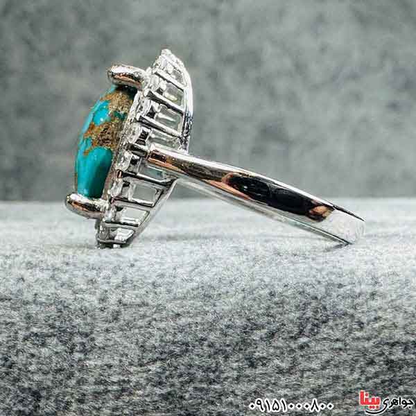 انگشتر فیروزه نیشابوری رودیوم بسیار زیبا و شیک _کد:۳۳۱۴۸