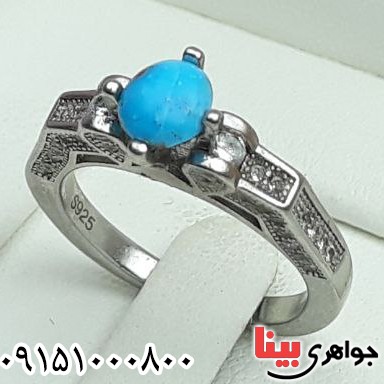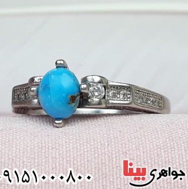 انگشتر فیروزه نیشابوری رودیوم خاص و خوشرنگ _کد:32394