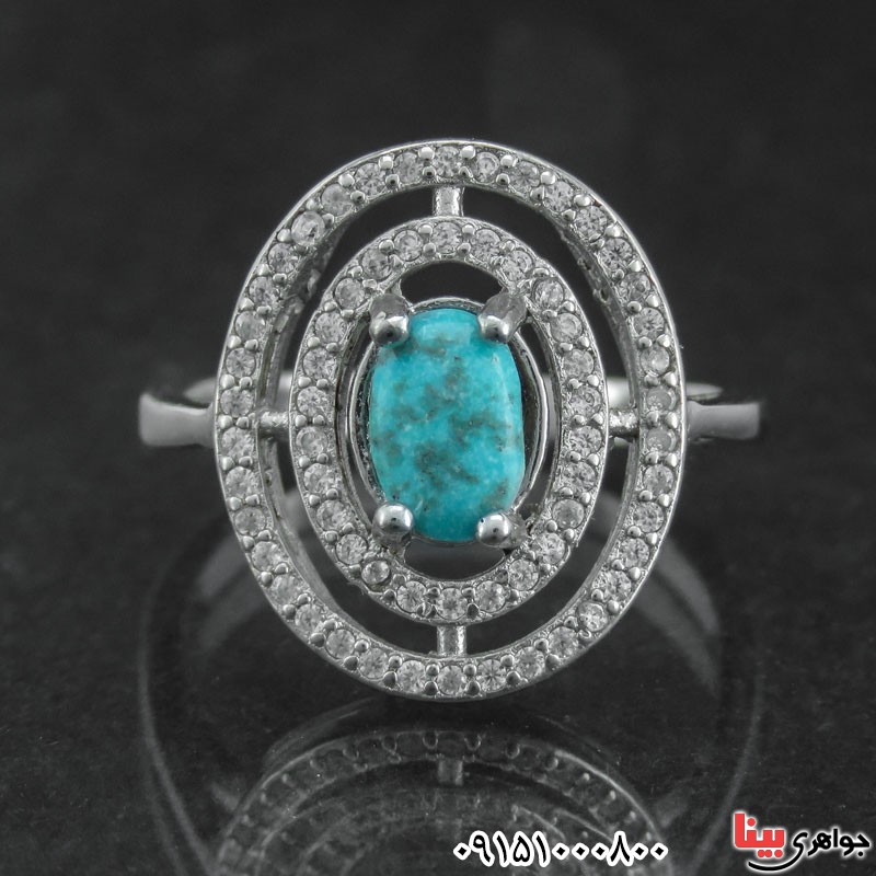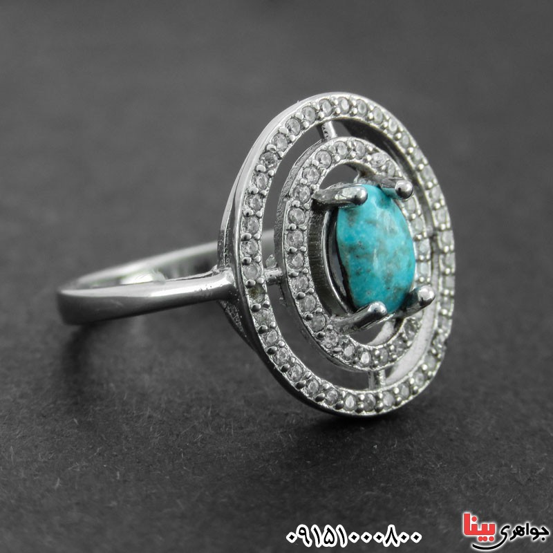 انگشتر فیروزه نیشابوری رودیوم زنانه دور نگین _کد:18523