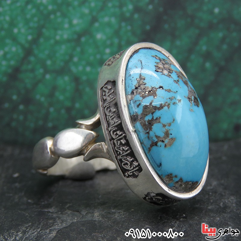 نقره 925 عیار - نگین انگشتر فیروزه نیشابوری خاص و شیک - انگشتری زیبا - انگشتر خوش ساخت، بادوام و ضخیم - (خواص فیروزه: دفع چشم زخم - افزایش درآمد - بچه دار شدن - محافظت در برابر حوادث و بلایا و ... ) - انگشتر دست ساز با حکاکی لیزری هنر دست استاد رفیع - نگین این انگشتر فیروزه، معدنی اصلی میباشد - نگین انگشتر با تراش دامله - وزن: حدود 13/3 گرم - طرح روی رکاب حکاکی لیزری می باشد - سری: 14011018/21**AM S:0