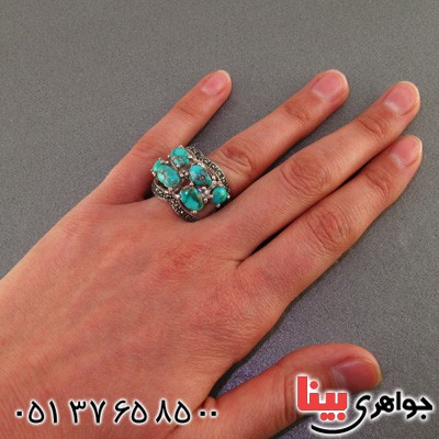 انگشتر فیروزه نیشابوری شجری درشت زنانه خوش طبع مارکازیتی _کد:۲۳۱۴