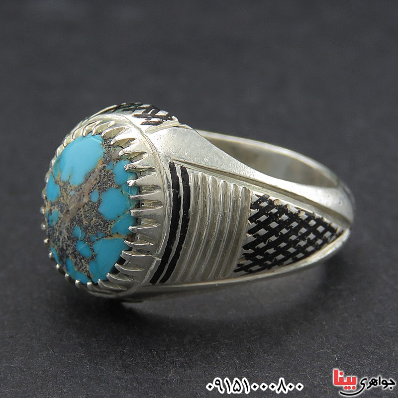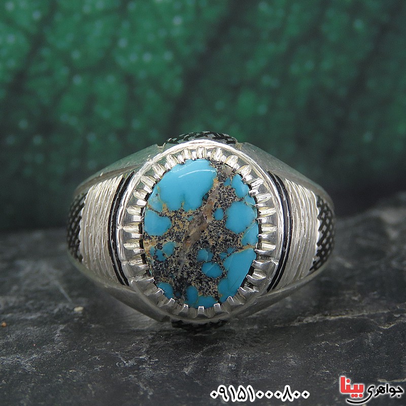 انگشتر فیروزه نیشابوری شجری سبک قدیمی مردانه خوشرنگ _کد:18540