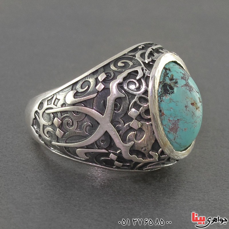 انگشتر فیروزه نیشابوری مردانه طرح سیاه قلم _کد:18796