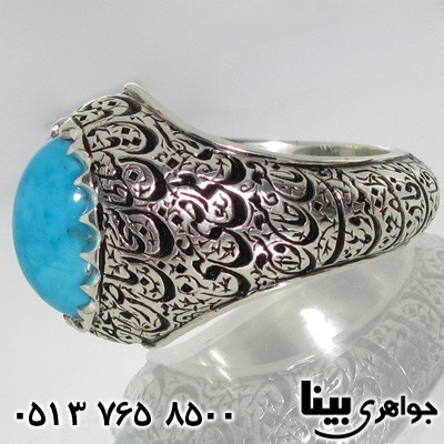 نقره 925 عیار - نگین فیروزه درشت و تک و بسیار خوشرنگ - قلم زنی خط گود (دعای چهل اسماء) کار دست استادمحمد جواد نظری و یساول که چندین ماه روی آن وقت گذاشته شده - کاری سنگین وزن و موزه ای (لطفا توضیحات بیشتر را ملاحظه نمائید.)