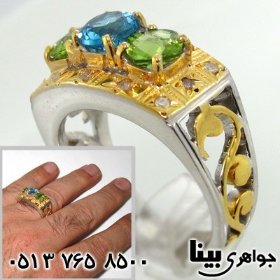 انگشتر چند جواهر الماس، توپاز و زبرجد فاخر مردانه، رنگبندی نگینها خیلی بهم میاد