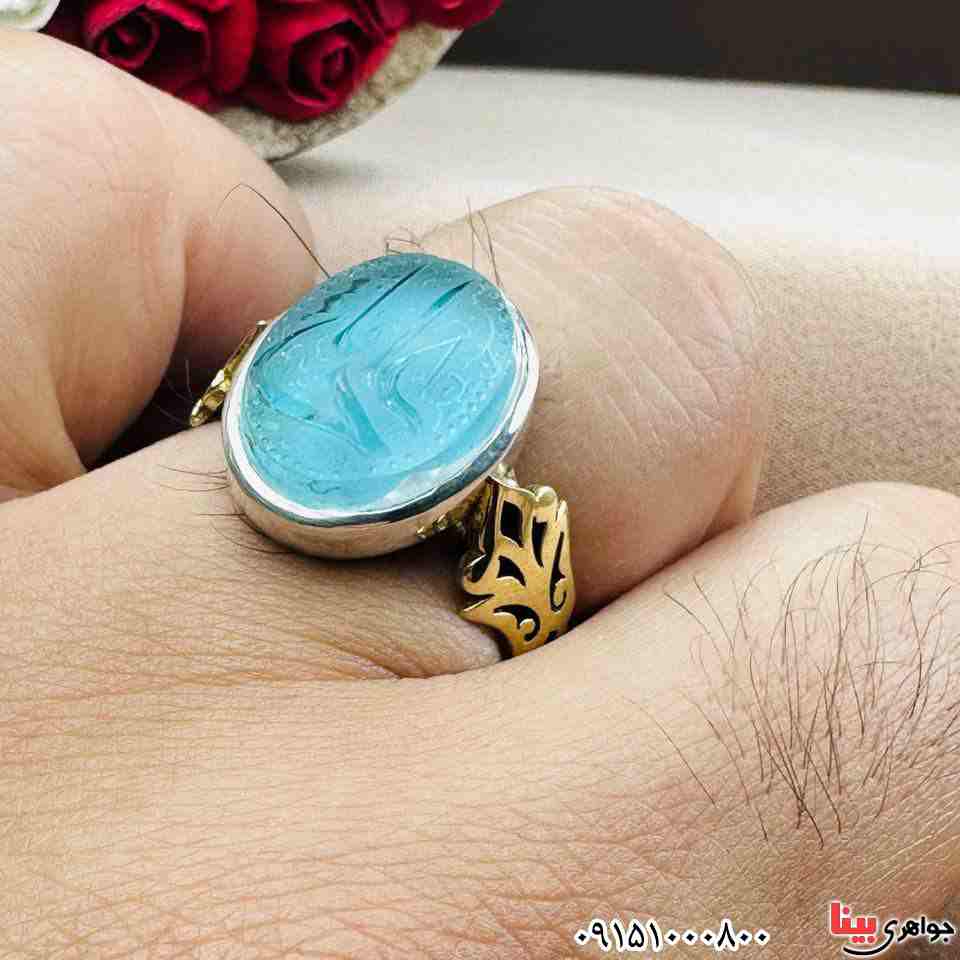 انگشتر چند جواهر خطی بسیار زیبا با حکاکی یا علی _کد:۳۳۲۲۸