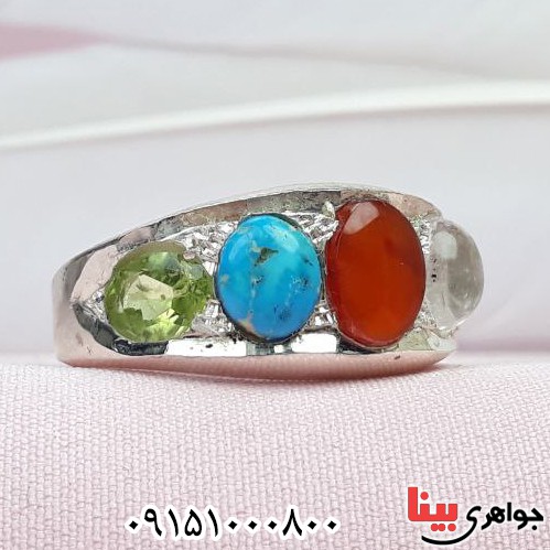 انگشتر چند جواهر دست ساز خاص و زیبا مردانه _کد:32865