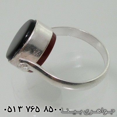 رکاب این انگشتر چند جواهر دورو بیضی عقیق سیاه و قرمز خیلی عالیه. لطفاً بازم بیارید. ساده و خوشگل