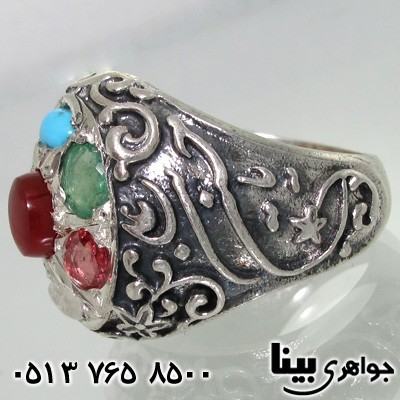انگشتر چند جواهر یا حسین با رکاب زیبا و باشکوهش و نگینهای خوشرنگش دلبری میکنه