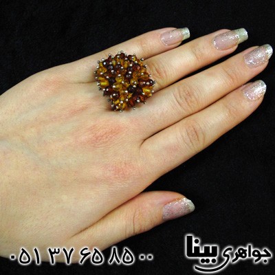 نقره 925 عیار - تک - نگین های کهربا بسیار خوشرنگ - تیره روشن بودن نگین ها باعث جذابیت انگشتر بر روی دست می شود - با این انگشتر در مهمانی های می درخشید . سری :930626