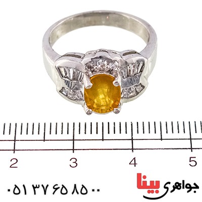 انگشتر یاقوت زرد خوشرنگ زنانه رودیوم لوکس مدل نوشا _کد:۹۵۰۲