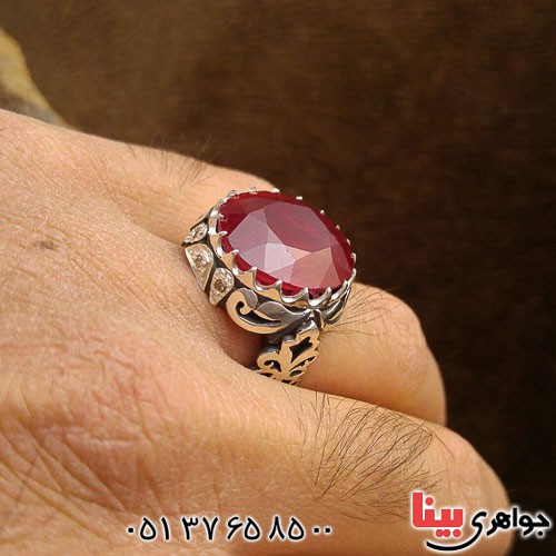 نقره 925 عیار - نگین انگشتر یاقوت سرخ بسیار خوشرنگ و زیبا - انگشتری فاخر و باشکوه مناسب آقایان خوش سلیقه - رکاب انگشتر دور الماس با دقت و ظرافت بالایی شبکه کاری شده است - (خواص یاقوت سرخ : خوشبختی، پیوند زوجین، هیبت و شکوه، درمان بیماری های قلبی و سرطان خون، درمان ناتوانی های جنسی و ناباروری، ضدافسردگی و ... ) - با امکان صدور شناسنامه - نگین این انگشتر یاقوت سرخ، معدنی اصلی میباشد - نگین انگشتر با تراش برلیانی - طرح روی رکاب شبکه کاری شده می باشد - سری: 990320**S S:-1
