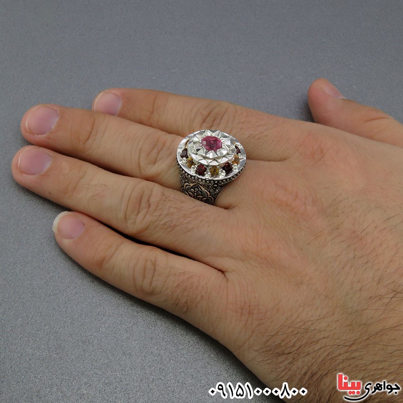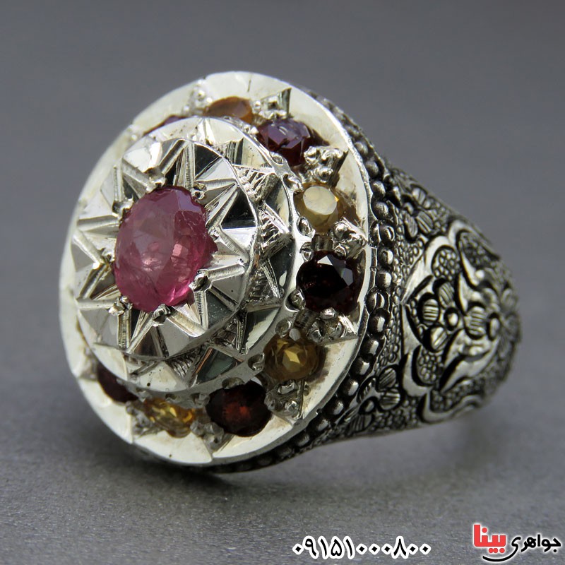نقره 925 عیار - نگین انگشتر یاقوت سرخ خوشرنگ و زیبا - انگشتری بسیار زیبا و شیک مناسب آقایان خوش سلیقه - (خواص یاقوت سرخ : خوشبختی، پیوند زوجین، هیبت و شکوه، درمان بیماری های قلبی و سرطان خون، درمان ناتوانی های جنسی و ناباروری، ضدافسردگی و ... ) - انگشتری دست ساز با رکابی زیبا و مخراج یاقوت دور تا دور نگین اصلی - زمان ساخت این انگشتر 15 روز می باشد - نگین این انگشتر یاقوت سرخ، معدنی اصلی میباشد - نگین انگشتر با تراش برلیانی - وزن: حدود 27/7 گرم - طرح روی رکاب قلم زنی شده می باشد - سری: 1400730/31**M S:1