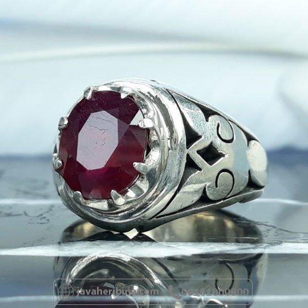 انگشتر یاقوت سرخ نقره مردانه خوش رنگ _کد:34089