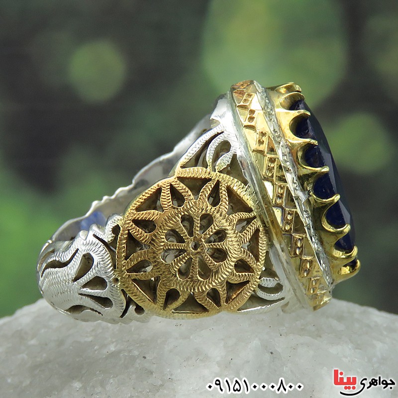 انگشتر یاقوت کبود خاص درشت دست ساز فاخر مردانه _کد:27557