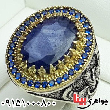 انگشتر یاقوت کبود فاخر بسیار خاص و زیبا مردانه _کد:32396